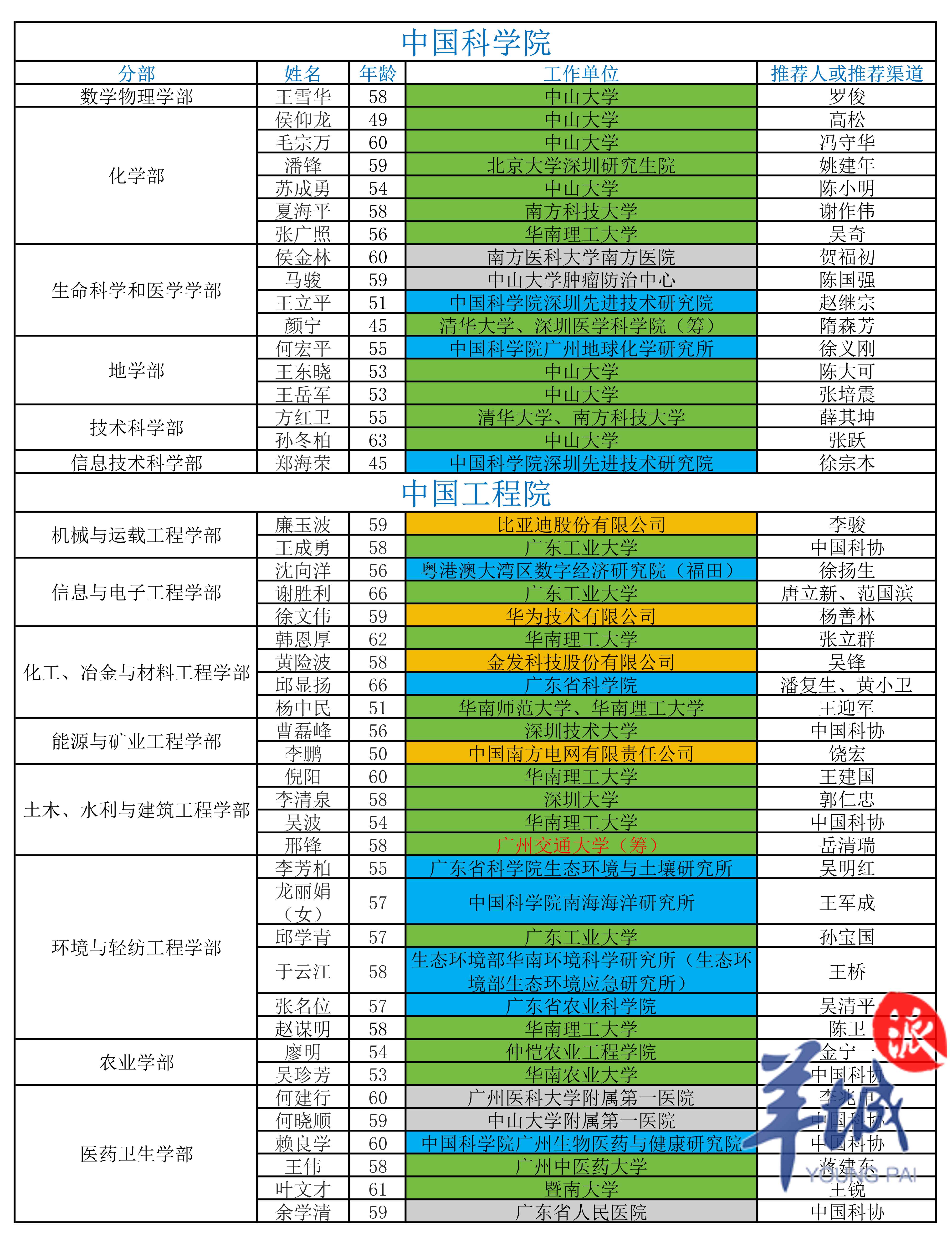 从年龄上看,“60后”已经成为候选人主力。在广东候选人中,年长者有俄罗斯工程院外籍院士、广东工业大学谢胜利教授,广东省科学院教授级高级工程师邱显扬;年轻者有45岁的深圳医学科学院(筹)创始院长、深圳湾实验室主任颜宁教授,中科院深圳先进技术研究院副院长郑海荣研究员。