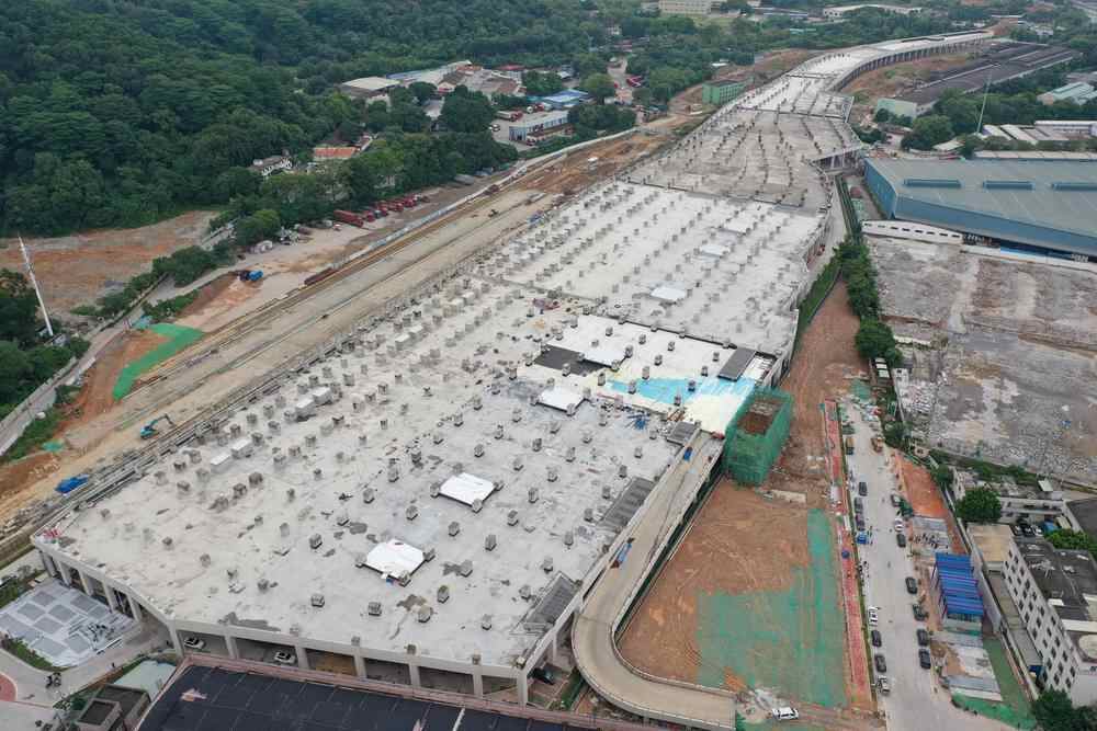 双岗停车场位于龙头山森林公园西南侧山脚,呈东西走向,占地面积约11.2万平方米,其中盖体工程总建筑面积约6.77万平方米,建成后五号线将形成“一段一场”(鱼珠车辆段和双岗停车场)模式,满足全线网L型车大架修检修任务的需求。
