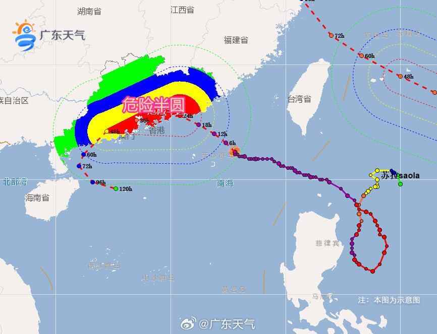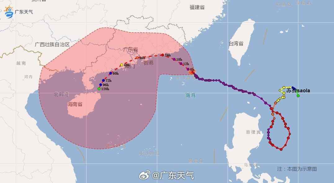 不过,这次“苏拉”是明显冲着广东来了,不论它登不登陆、登陆广东哪个城市,它都会沿着广东海岸线走一遭,风雨的爪子必将上岸,给广东省东部和珠江三角洲中南部市县带来严重风雨影响。