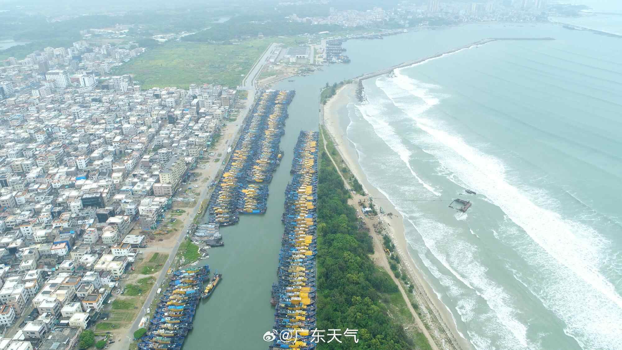 揭阳市惠来县的各项防御台风工作在紧张有序进行中,惠来县的各类船舶已全部提前撤回避风港,一排排渔船整齐有序地停靠岸边。