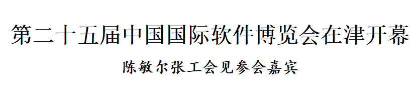 8月31日,第二十五届中国国际软件博览会在津开幕。市委书记陈敏尔,市委副书记、市长张工会见来津参会的工业和信息化部副部长王江平一行。张工、王江平和中国电子信息行业联合会会长陈肇雄出席软博会开幕式并致辞。