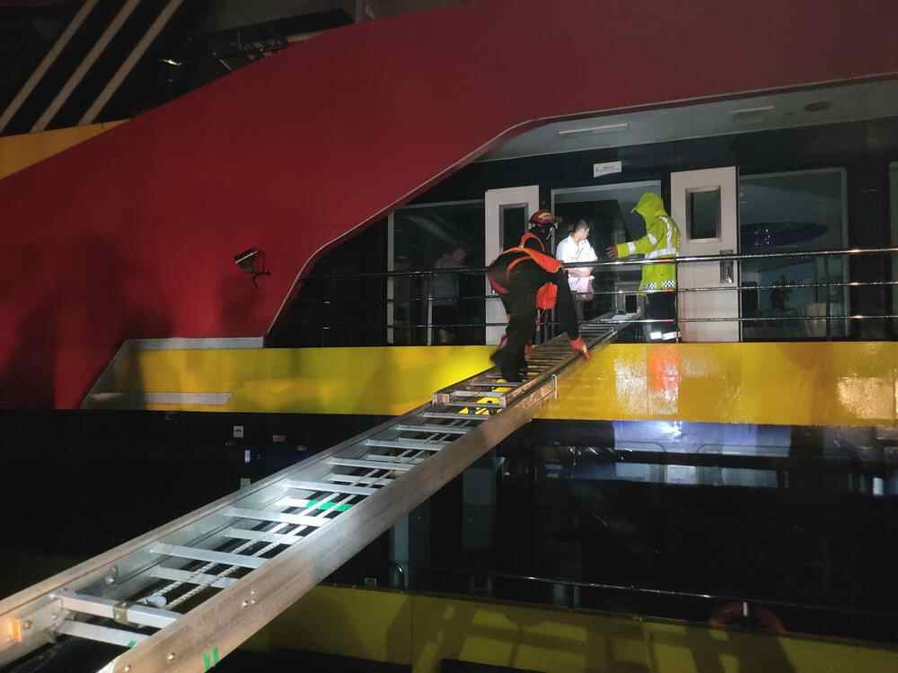 “到达现场后,我们发现游轮因风雨太大,轮船距离岸边过远无法靠岸,情况十分紧急。”消防救援人员经勘察后立即确定救援方案,在做好防护的情况下,利用架设三节拉梯安全绳等安全防护装备,一边将被困人员转移到安全地带,一边仔细排查游轮确保无人员滞留。经过半小时的努力,成功疏散全部被困人员。