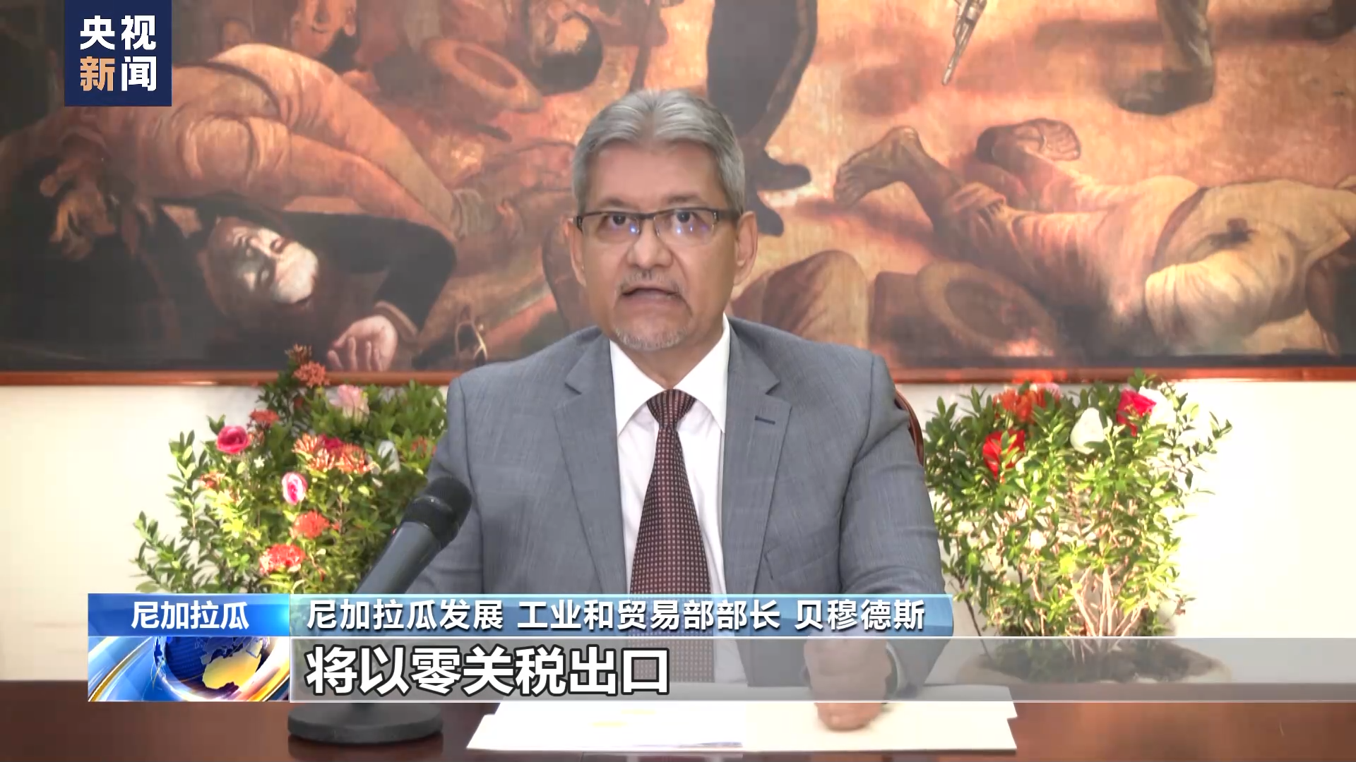 尼加拉瓜发展 工业和贸易部部长 贝穆德斯:尼加拉瓜向全球出口的商品中,91.4%的商品出口到中国时享有关税优惠,在自贸协定签署后,尼加拉瓜出口货物中71%的商品将以零关税出口。