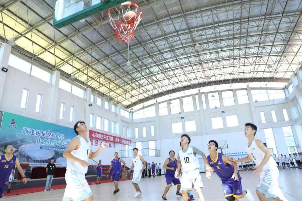 2020年9月7日,汾口中学学生在体艺馆铺设一新的木地板上打篮球。(浙江一建 供图)