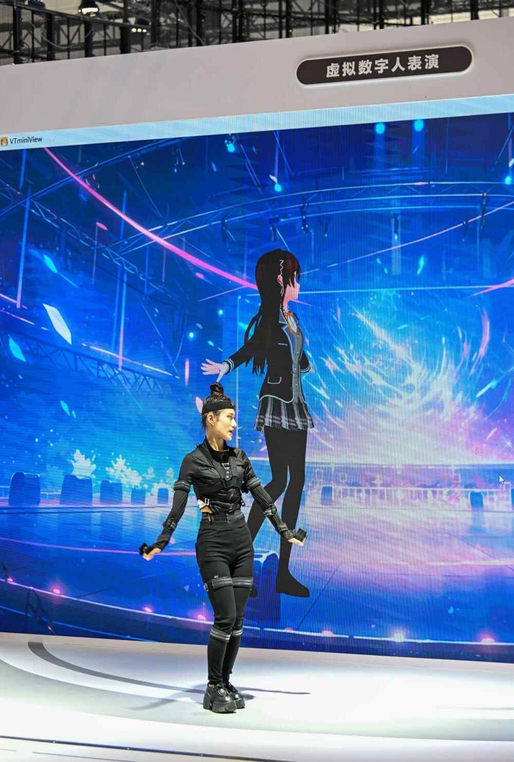 在中国电信展区,元宇宙展厅吸引众多观众的目光。身处不同地方的游客,只需扫描二维码就可以进入“元宇宙景点”,观众、导游之间可以在线上互动,足不出户便可沉浸式欣赏美景。在展区的AI智能摄影区,不少游客正在排队,站到指定区域,游客就可以“变身”漫画形象,拍照留念。一块大屏幕旁,舞蹈演员穿着智能感应设备,屏幕上的玩偶形象随着她的动作同步变化,俏皮可爱。