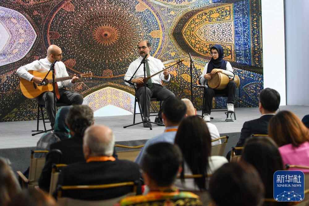 ↑9月2日,在“一带一路”沿线国家特色文化展示活动开幕式上,来自伊朗的乐队表演节目。
