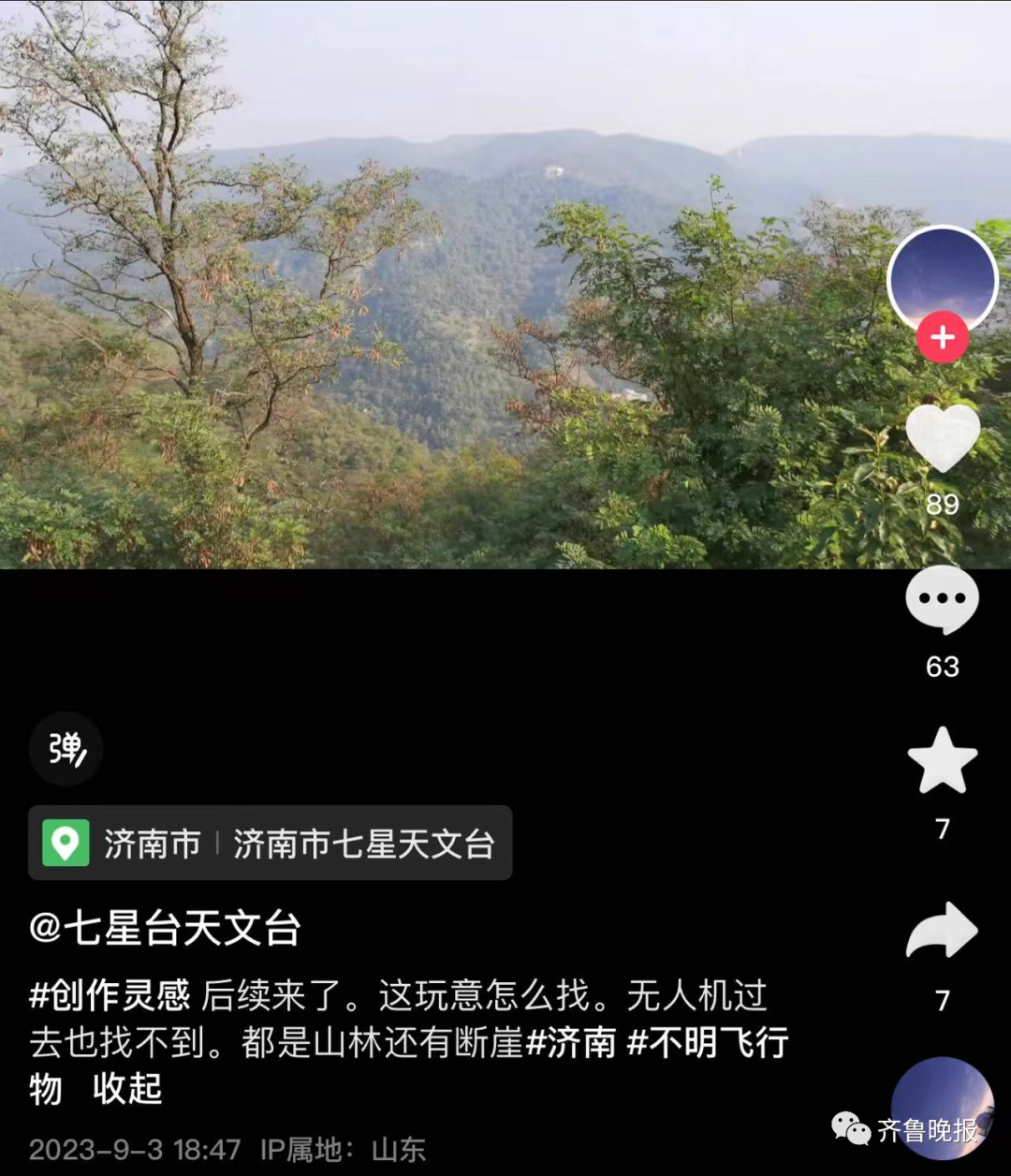 9月1日凌晨,济南七星台天文台上空出现不明物体坠落到天文台东南方向的山里。