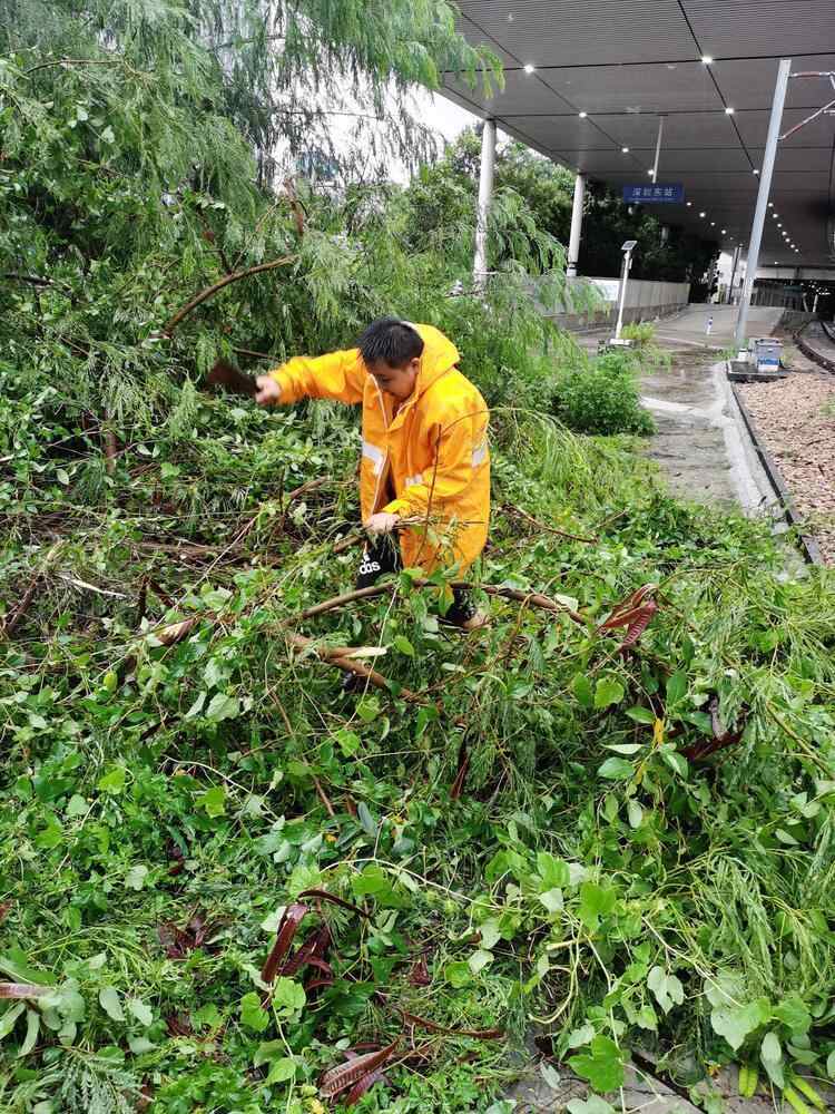 目前,广州、惠州等工务段对粤东铁路沿线彩钢瓦、上跨建筑物附挂物、危树等易受大风影响造成侵限的设施,采取加固或清除等措施进行处置。广州南高铁工务段安排粤东各车间防洪料具提前装车,组织大型抢险机械随时做好抢修准备。