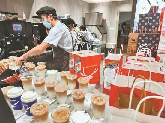 当天上午、中午与下午,记者分三批次前往不同瑞幸咖啡店,都出现了火爆情况,排队的除了等候咖啡的顾客,也有外卖小哥。“今天小哥的手都要摇残了。”一位顾客看着工作人员感慨道。等到中午两点多,天河区一瑞幸店告诉记者,现在下单要等一个小时才能取货。另外,也有部分瑞幸店宣布售罄。