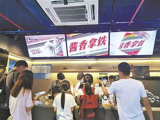 值得一提的是,茅台冰淇淋专卖店销售的咖啡产品在销售咖啡时,工作人员会当着消费者的面现场打开茅台酒,进行调制。而这款联名酱香拿铁,使用的是白酒风味厚奶,来调制咖啡。