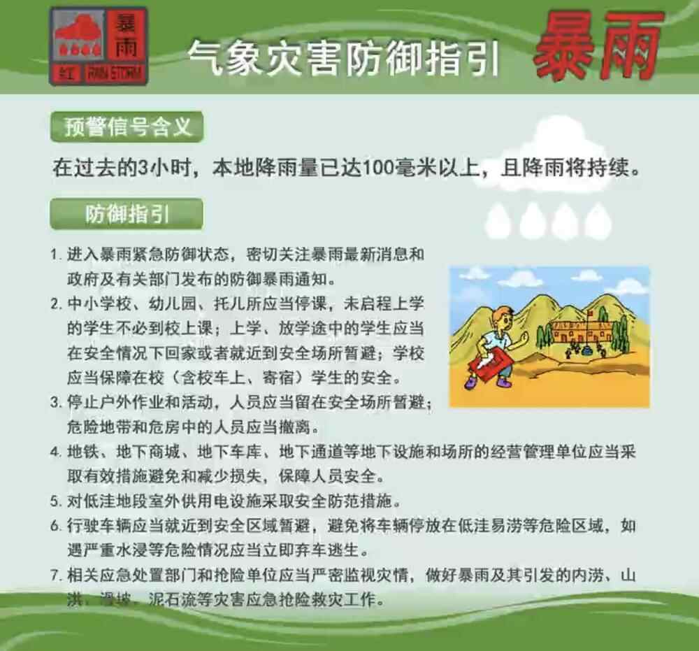 揭西县气象台9月7日9时46分将暴雨红色预警信号扩展到全县,全县所有中小学、幼儿园紧急停课。
