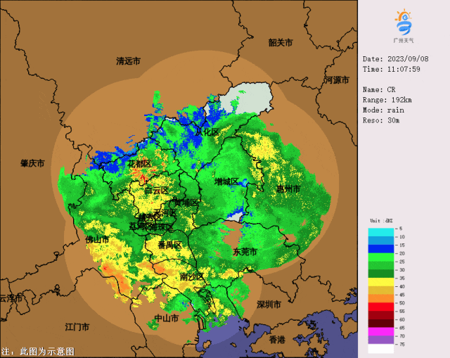 9月7日夜间至9月8日上午,广州仍持续降雨