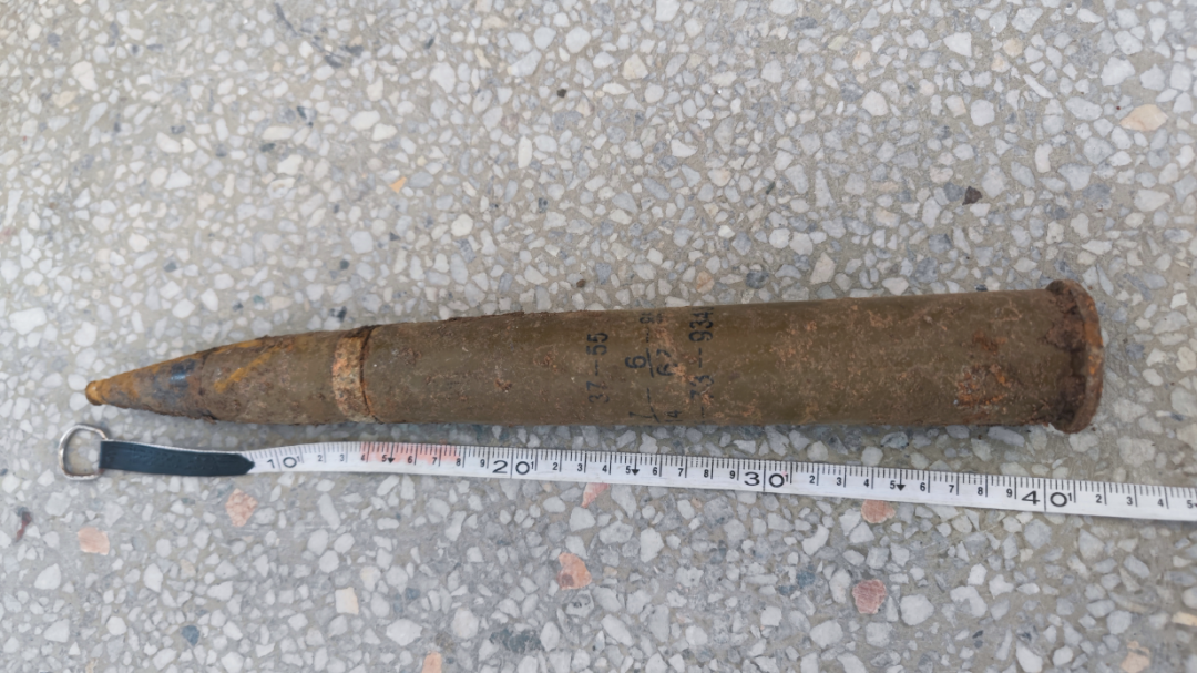 经研判,该炮弹为战时遗留高射炮弹,弹体完整且字迹清晰,引信完好,存在较大的危险性。