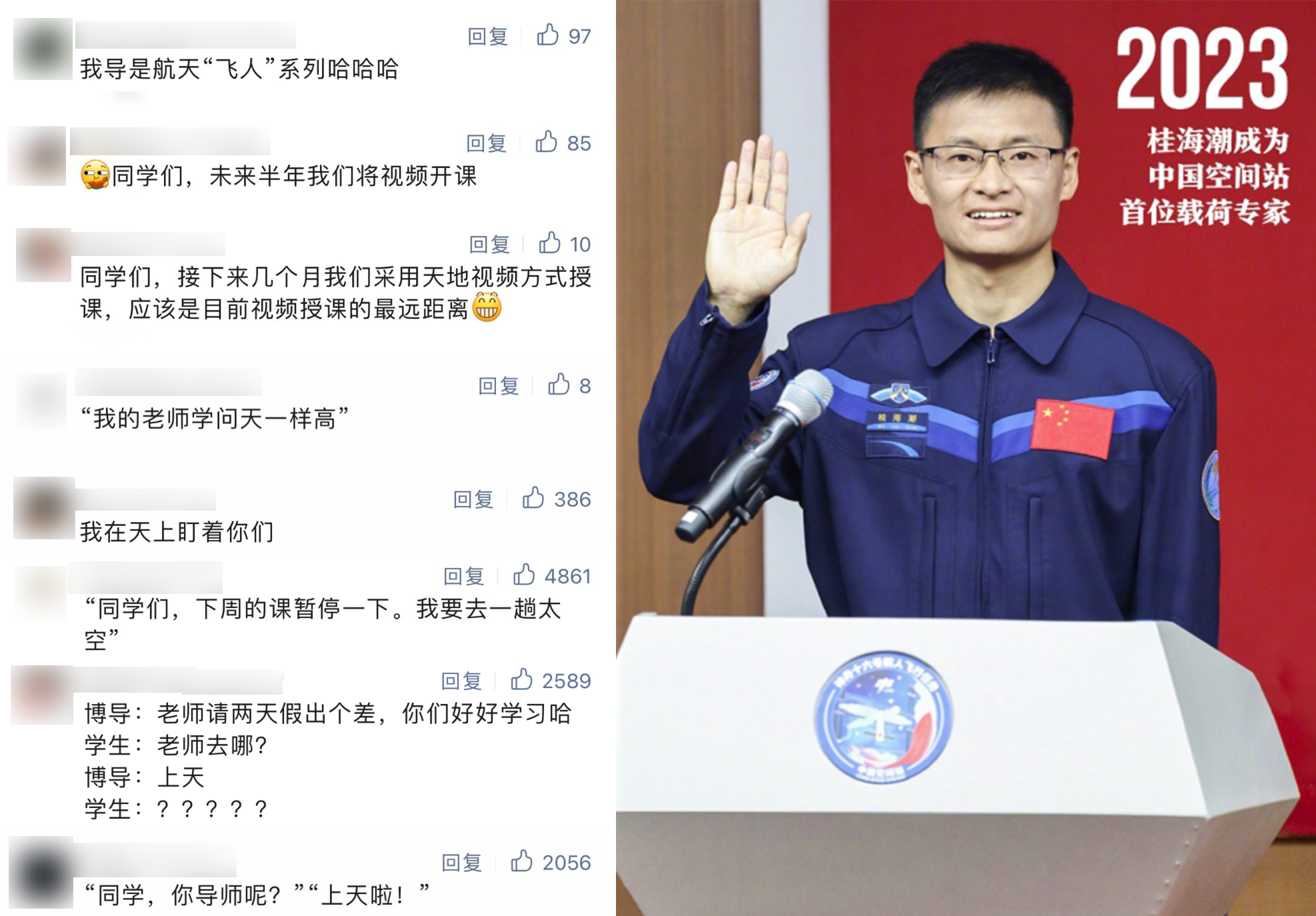 有位老师正在太空出差中