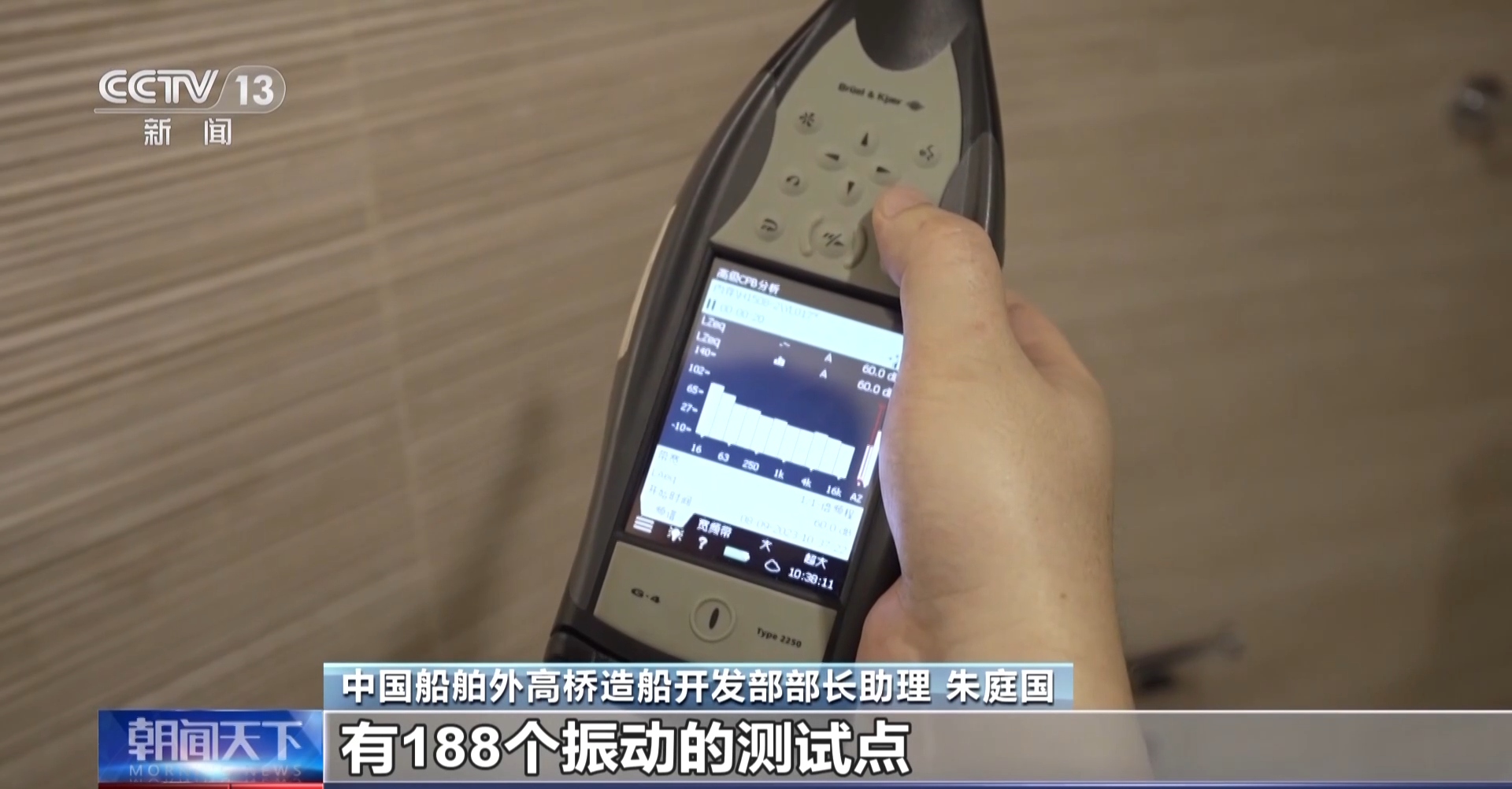 中国船舶外高桥造船开发部部长助理 朱庭国:我们有815个噪声的测试点,188个振动的测试点。目前需要在海试状态下完成的项目,已经圆满完成了,符合我们的预期。