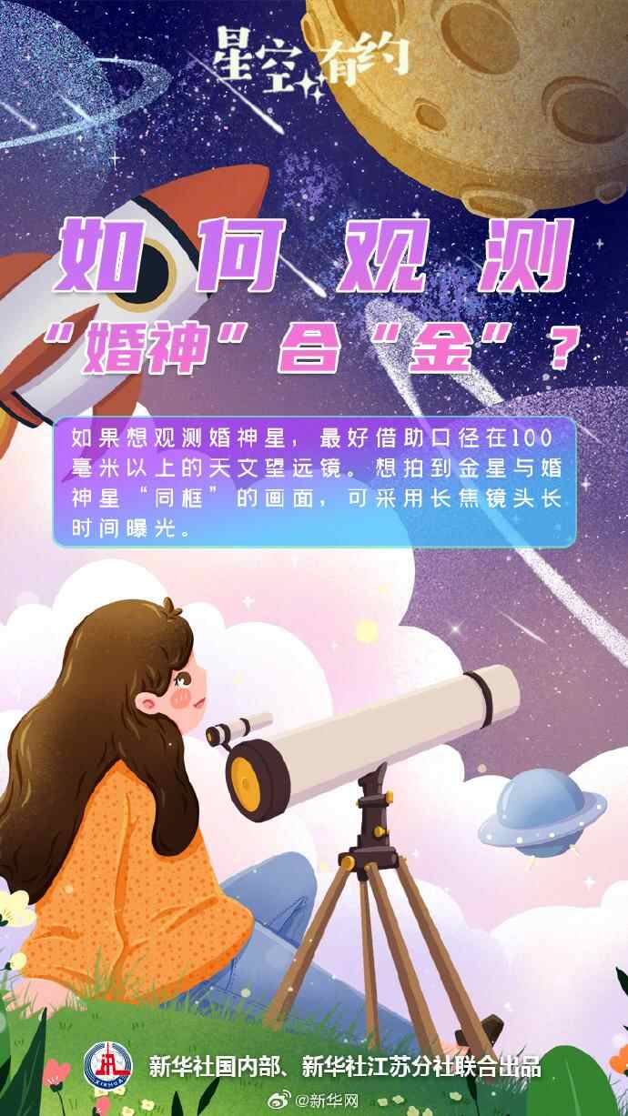 今年9月的两次婚神星与金星相合,二者角距离比较近,公众用肉眼只能看见明亮的金星。王科超建议,如果想观测婚神星,最好借助口径在100毫米以上的天文望远镜。想拍到金星与婚神星“同框”的画面,可采用长焦镜头长时间曝光。