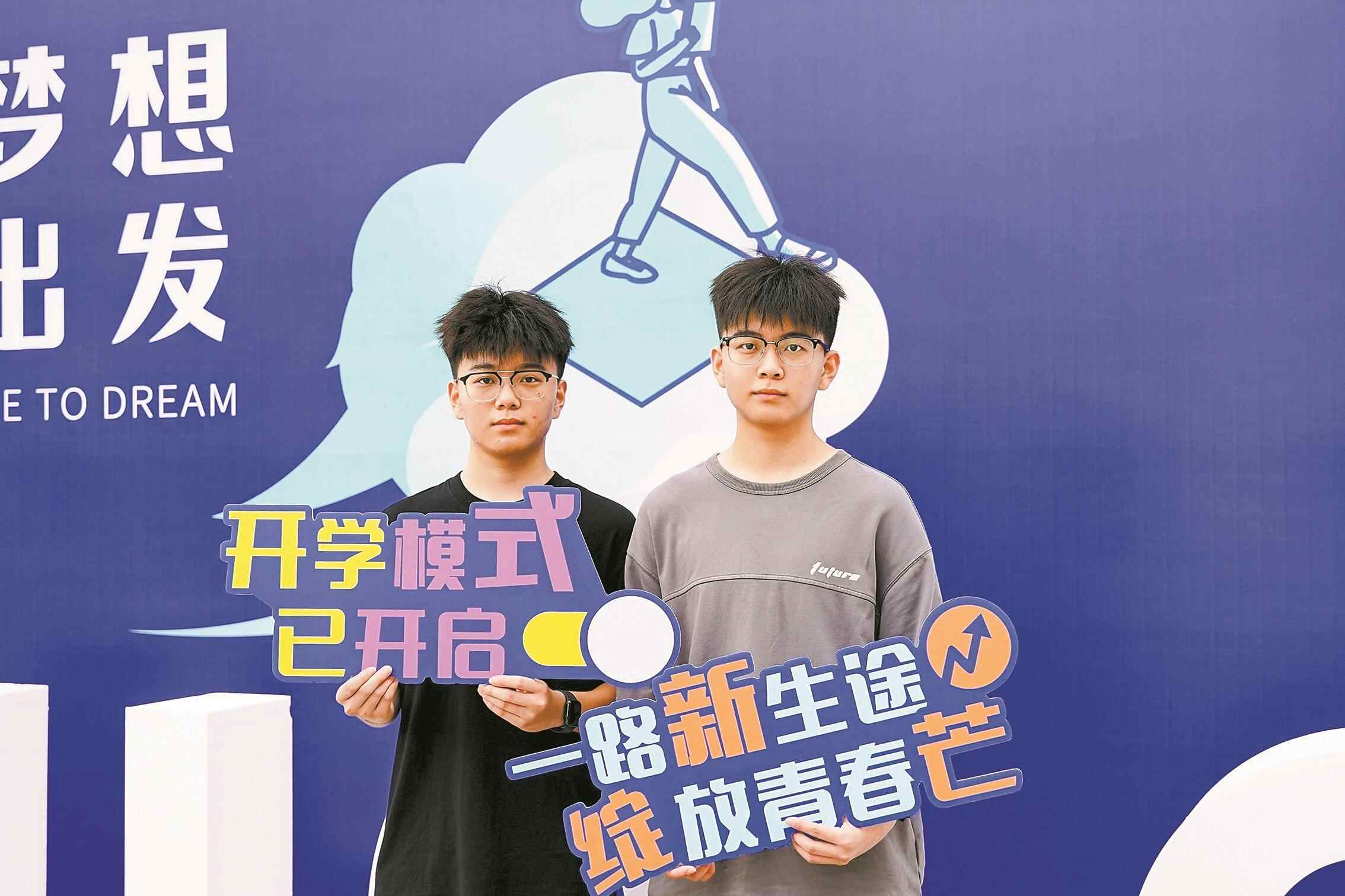 最为特别的是来自深圳的张宇豪、张宇杰。他们是一对双胞胎兄弟,今年高考以同样的分数双双被该校计算机学院数据科学与大数据技术专业录取。更巧的是,这对双胞胎不仅是同班同学,而且还是室友。在采访中记者得知,兄弟俩高中就读于不同的高中,哥哥宇豪就读于深圳市建文外国语学校,弟弟宇杰就读于深圳市光明区高级中学,因为高三“错峰放假”,兄弟俩见面的时候都很少。“对于高考能取得相同的分数,有点意外也有点惊喜。”哥哥宇豪说道。宇豪告诉记者,小学、初中都在同一所学校,学习上有时会相互交流,进入高中基本就很少了,“但我们有着相同的爱好——打游戏、听音乐,所以我们也很有话说,感情很好!”