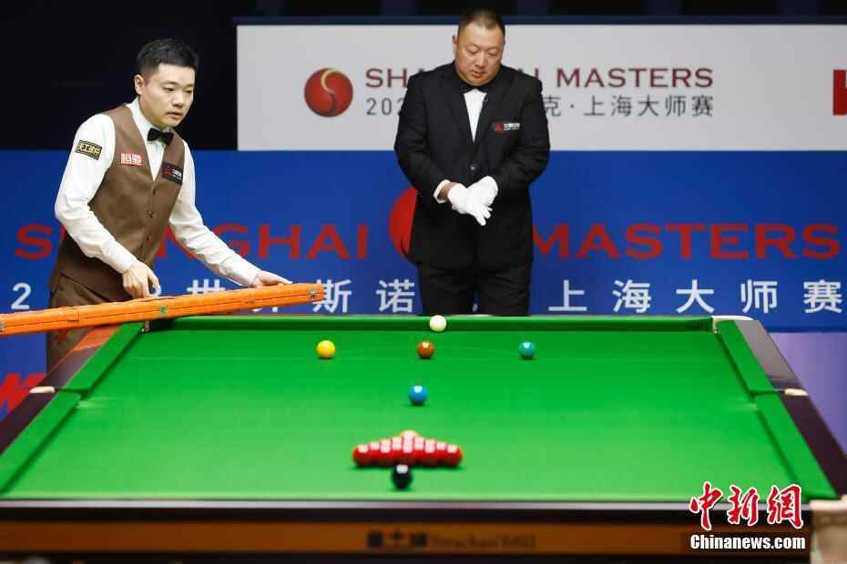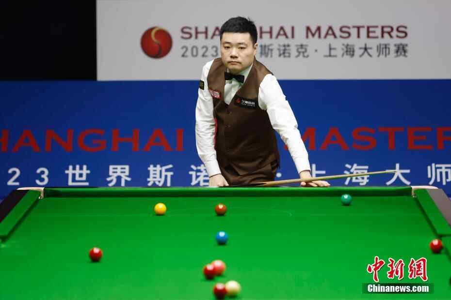 9月11日晚,2023世界斯诺克·上海大师赛在上海体育馆开杆。今年,赛事依旧延续24人邀请赛形式,参赛阵容由世界排名前16的选手,世界排名最高的4名中国选手(若在前16排名中则名额顺延),和展现中国斯诺克新生力量的4位“00后”外卡选手组成。图为开幕式后,丁俊晖在和斯佳辉的“中国德比”大战中击球。中新社记者 殷立勤 摄