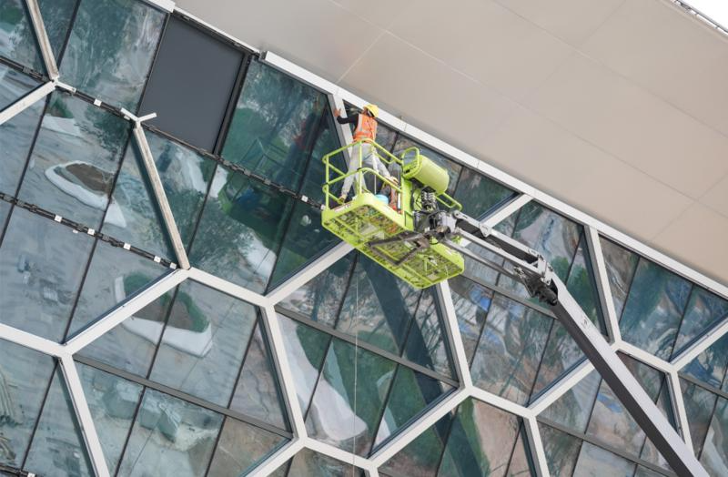 项目建设团队创新采用“钢网架液压整体提升”技术,通过地面拼装钢网架进行液压提升,有效提高了钢结构的施工工效和质量。