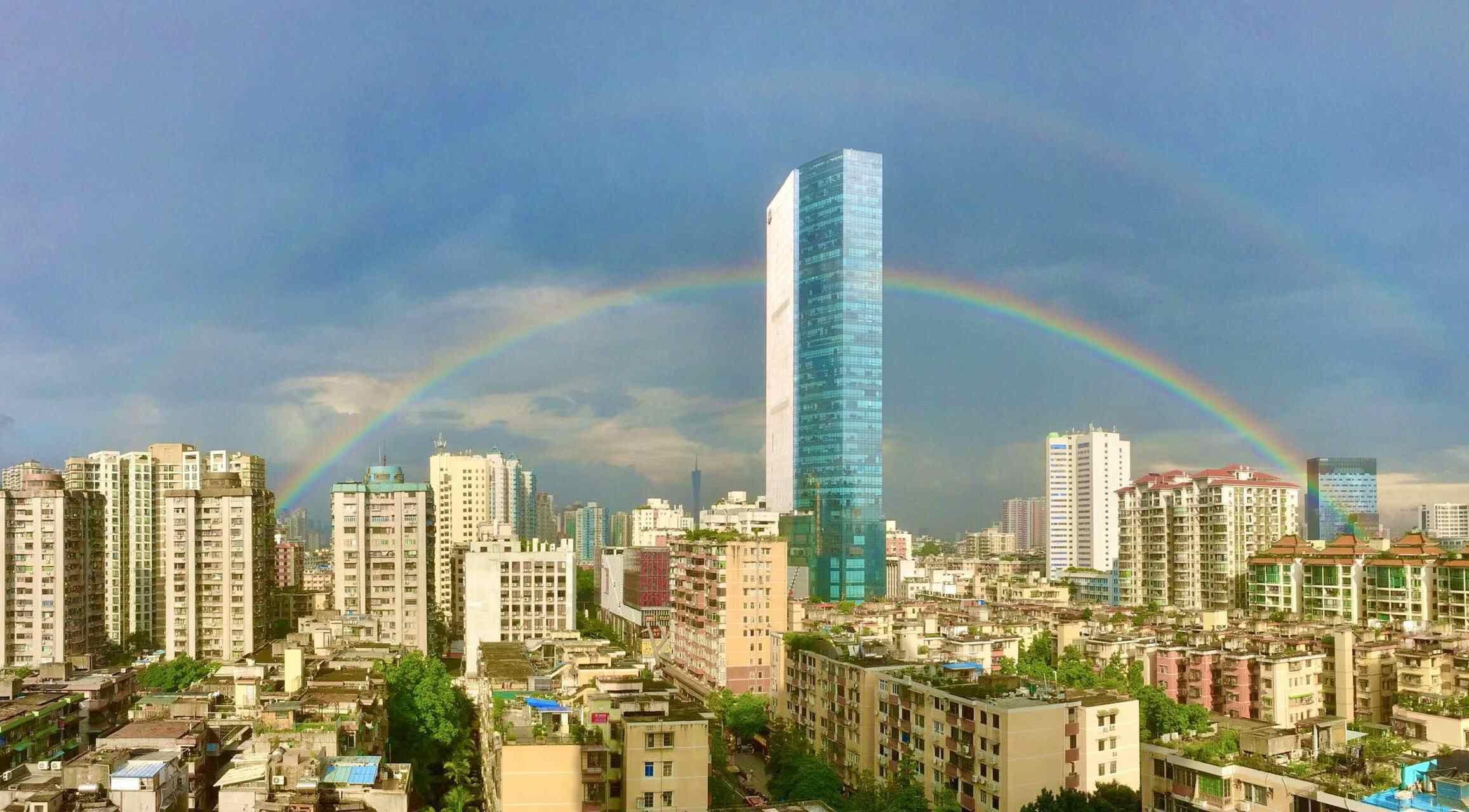 9月12日,广州再次出现“午后雨”。雨水虽为市民生活工作带来一些不便,但也可能随时制造“惊喜”。傍晚,广州中心城区降雨初歇阳光渐露。在雨水和阳光中,广州中心城区多地可见彩虹,有海珠街坊还目睹“双彩虹”。