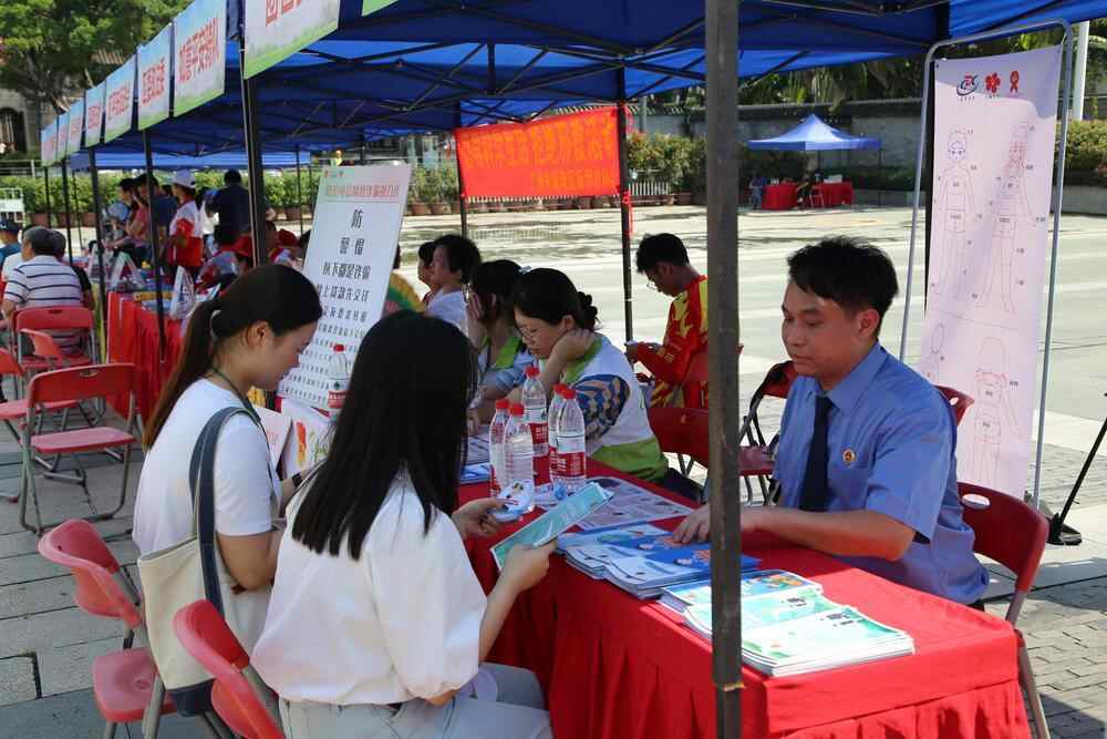 活动现场的另一边,广州市人民检察院、荔湾区委政法委、荔湾区扫黑办、荔湾区平安促进会、团区委、荔湾区人民检察院等多家单位和组织的工作人员通过悬挂横幅、发放宣传资料、设立咨询台等方式,向群众广泛宣传和讲解常态化扫黑除恶斗争、反有组织犯罪,鼓励广大群众积极检举揭发涉黑涉恶线索。同时,工作人员还围绕反邪教、防范电信网络诈骗、未成年人保护等方面的法律知识向群众开展了普法宣传。现场吸引了大量来往群众驻足参与,前来咨询了解和领取宣传手册的市民络绎不绝。