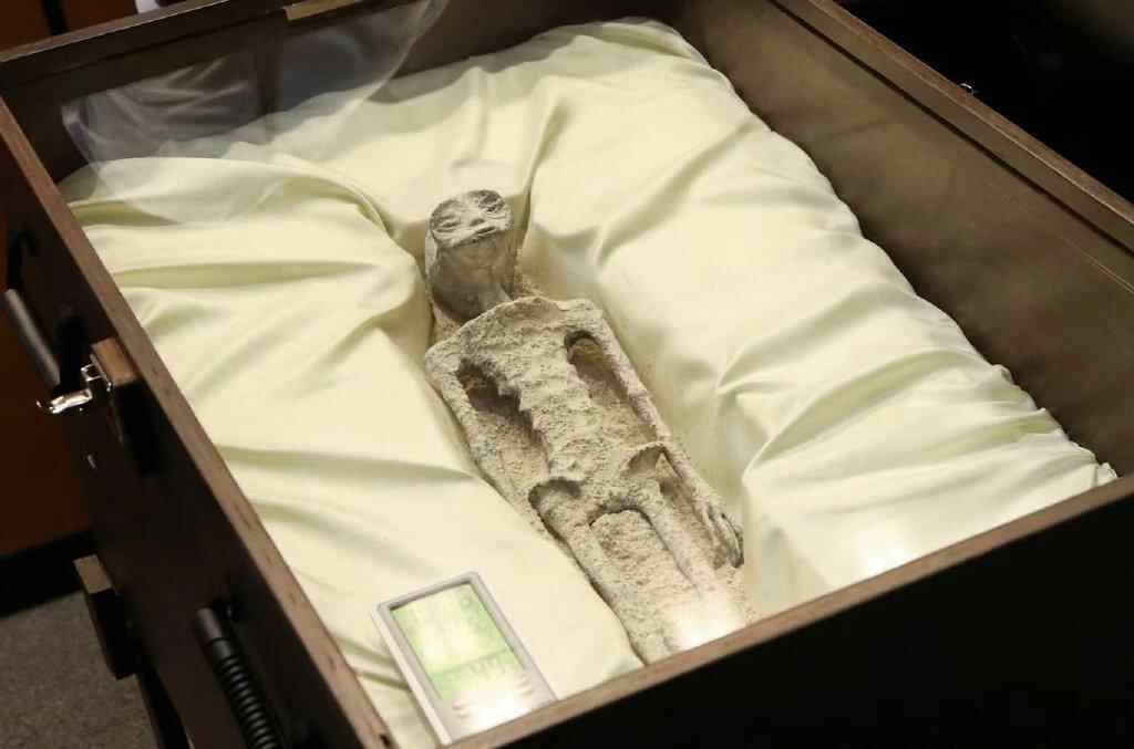两具小型的“非人类”尸体被展示在众人面前供观赏。在与会者和全国震惊的目光下,专家们坚称:该标本不属于“人类陆地进化”的一部分。这些生物不是在不明飞行物残骸内被发现的,它们是在硅藻(藻类)矿中发现的,后来变成了化石。