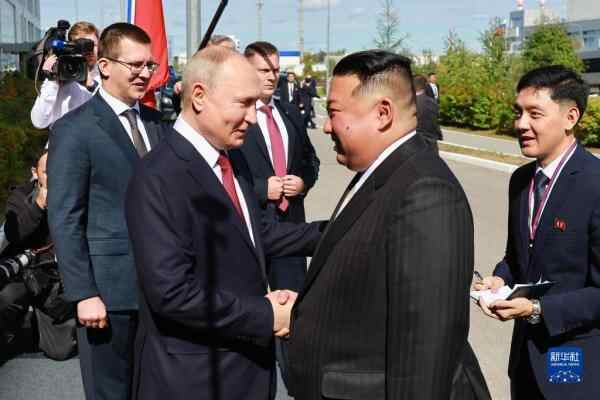 据俄新社13日报道,朝鲜国务委员长金正恩抵达位于俄远东地区阿穆尔州的东方航天发射场后,俄罗斯总统普京迎接,这两位领导人在见面后简短交谈。