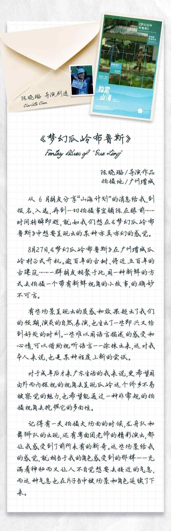 从6月朋友分享“山海计划”的消息给我,到报名、入选,再到一切拍摄事宜铺陈在眼前……时间转瞬即逝,就如我们想在《梦幻瓜岭布鲁斯》中想要呈现出的某种亦真亦幻的感觉。