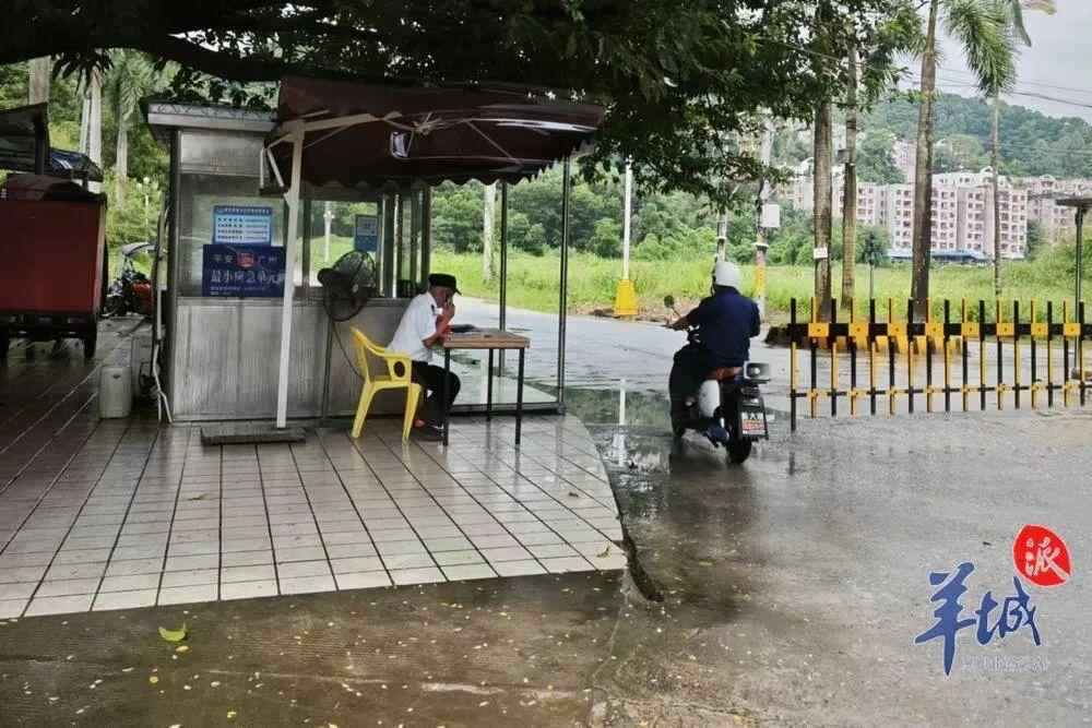从天河区珠江新城出发,经华南快速干线、广汕公路,30多分钟车程可到达该社区大门口。虽说是大门,这里只有一个安保门岗和一排用于车辆通行的简易闸门。门岗的一位保安,听记者说是前往看拍卖的房源,随即表示拒绝进入,理由是“并非小区业主,不能看房”。随后记者以去社区里面一个饭馆吃饭为由进入后,想再进入下一道门岗时,另外一个保安再次把记者拦下并劝离,理由同样是“非小区业主不能入内”。记者留意到,这些保安的制服上写着“宏鼎物业”。