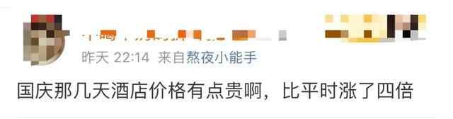 “做国庆旅行攻略发现,北京、上海、成都的如家、汉庭酒店全部涨价,日常300元/晚的大床房基本都涨到了700元甚至近千元。”多个网红旅游目的地城市,经济型酒店国庆房型房价直逼高端度假酒店房价。