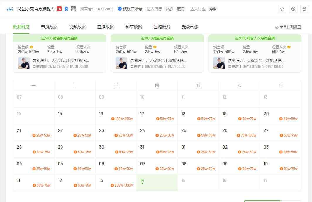 据飞瓜数据,精心官方旗舰店9月13日涨粉量甚至高于蜂花、华为,日增长量达52万。而其直播间销售额也在12日达到了250万至500万,超11日的25倍。