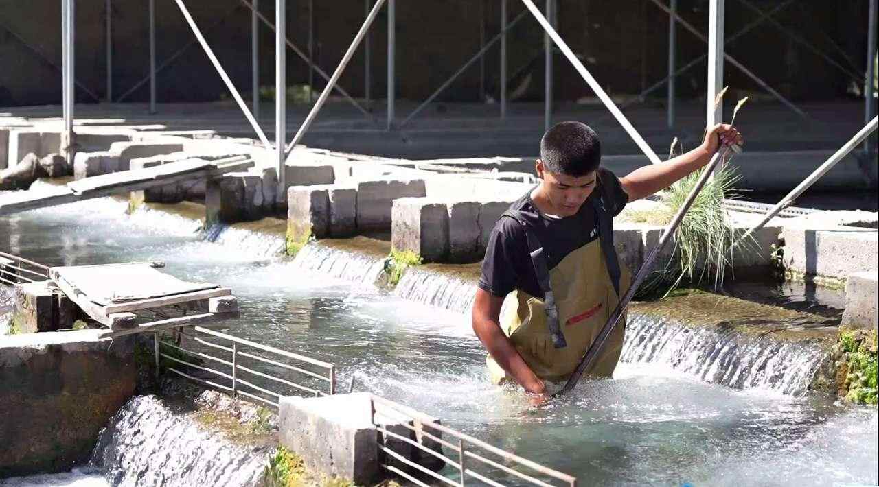冷水鱼养殖有什么窍门?最重要的是需要“活水”。该公司养殖场位于阿克苏河东岸,所用水来自于大河渗透的天然河水,鱼池为串联式流水养殖场。鱼池前端用于养殖三文鱼和鱼苗,后面用于养殖鲟鱼。今年下半年,因市场需求持续增加,渔场新培育了5000余尾鱼苗。
