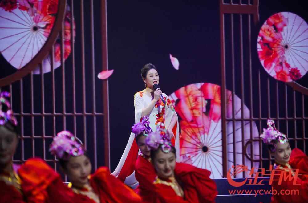 作为本场晚会的主角,粤剧绽放出绚丽的光彩。晚会特别邀请了广东粤剧院国家一级演员、中国戏剧梅花奖得主曾小敏献唱粤歌《薪火红棉》。五位国家一级演员、中国戏剧梅花奖得主倪惠英、陈韵红、崔玉梅、苏春梅、吴非凡也轮番登台,以剧目串烧的形式,分别演绎了《贵妃醉酒》《睿王与庄妃》《刁蛮公主戆驸马》《昭君出塞》《鸳鸯剑》等多个经典粤剧作品选段,让现场观众过足戏瘾。