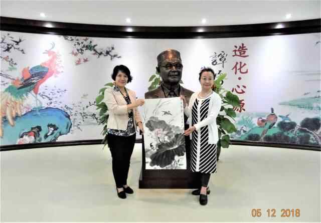 2018年12月,谭绿屏(右)向四会市谭勇艺术馆赠送父亲的画作