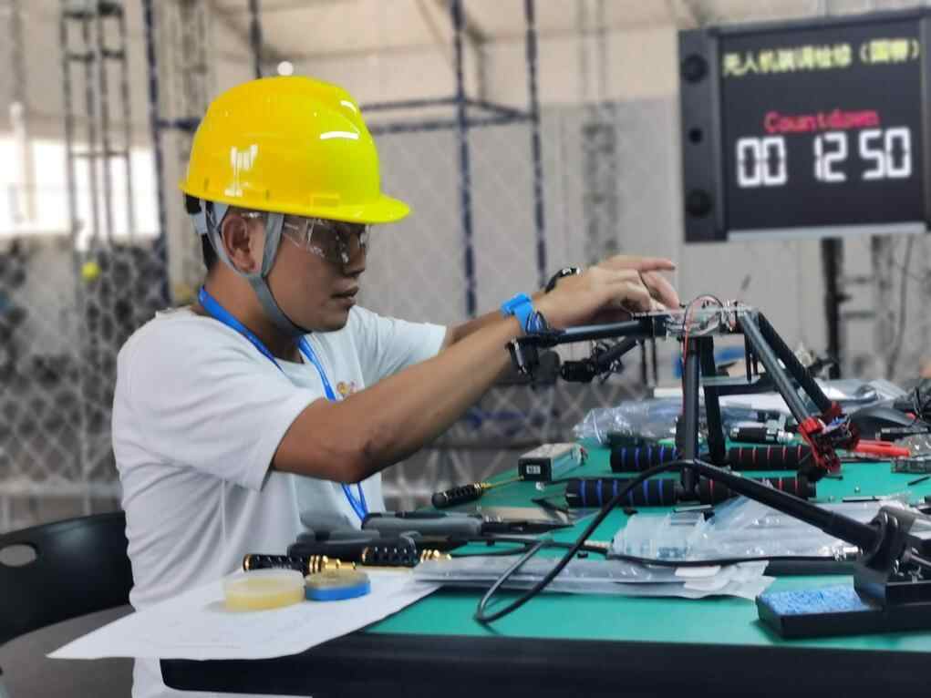 选手参加无人机装调检修赛项比赛。(新华社记者刘惟真摄)