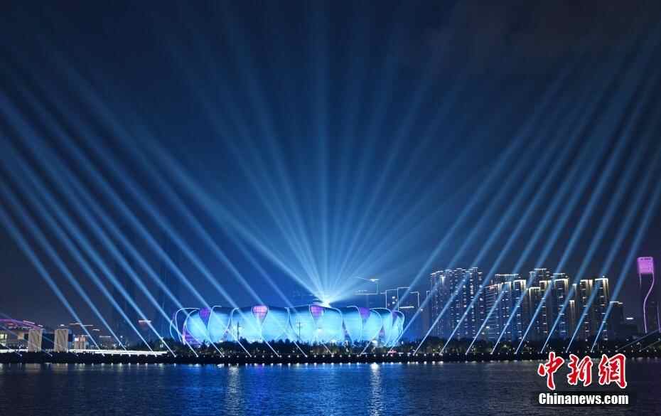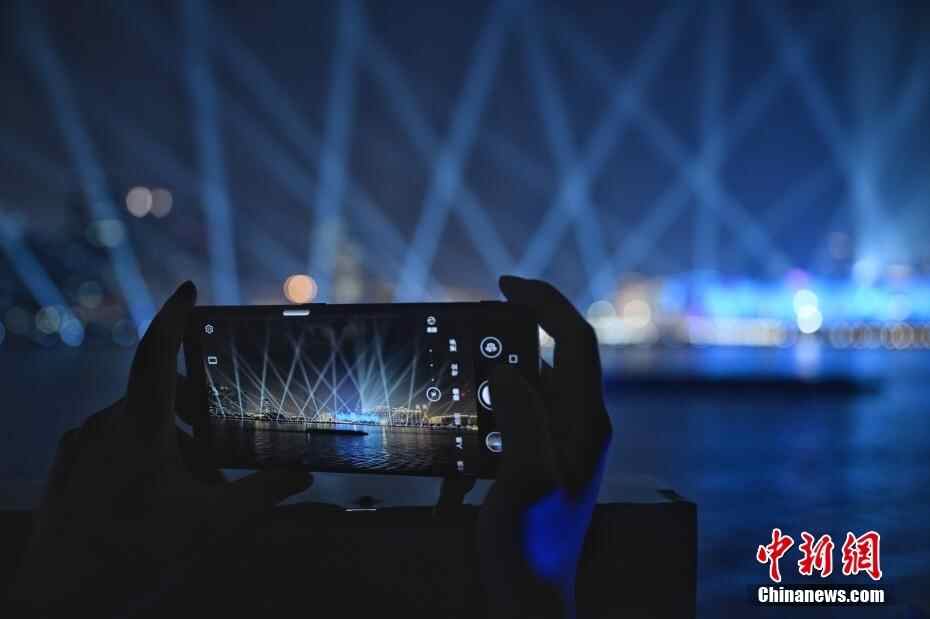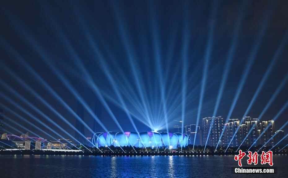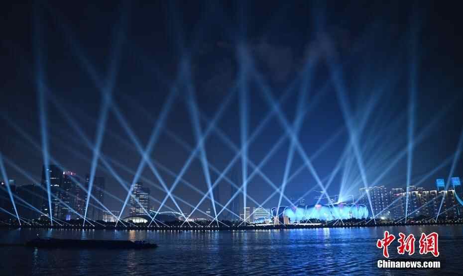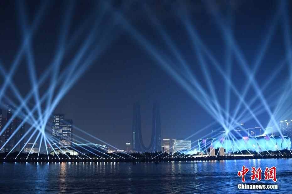 (杭州亚运会)杭州亚运会开幕式演练举行 璀璨灯光秀点亮夜空