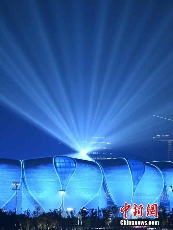 9月18日,杭州亚运会开幕式演练在浙江杭州奥体中心举行,璀璨灯光秀点亮夜空,美轮美奂。中新社记者 王刚 摄