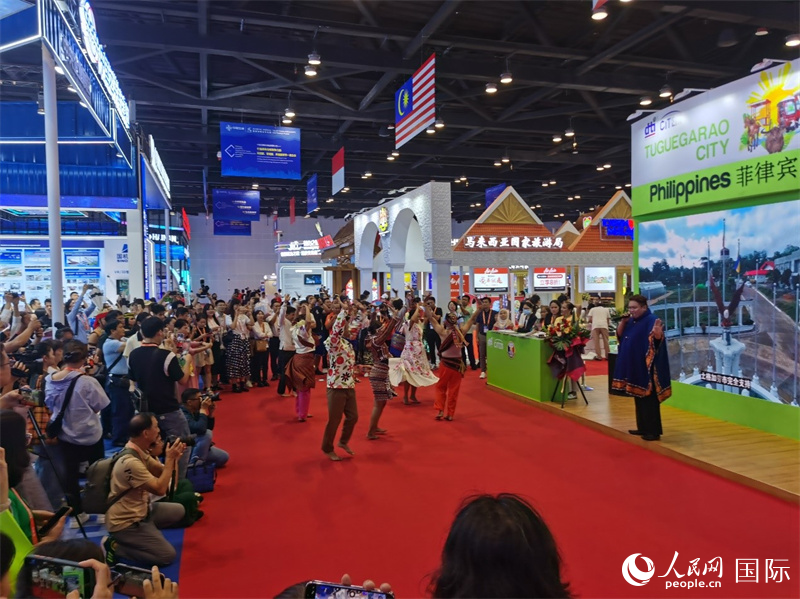 菲律宾“魅力之城”展区前载歌载舞。人民网 杨春燕摄