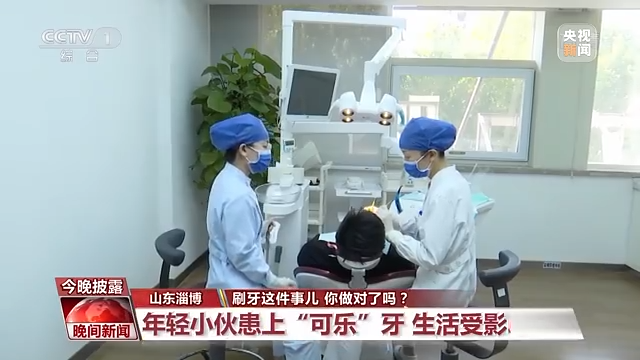 在淄博市市立医院口腔科,医生正在接诊一名患有“可乐牙”的患者。所谓“可乐牙”,是指长期饮用碳酸饮料,牙齿表面被酸蚀、软化而形成的蛀牙。