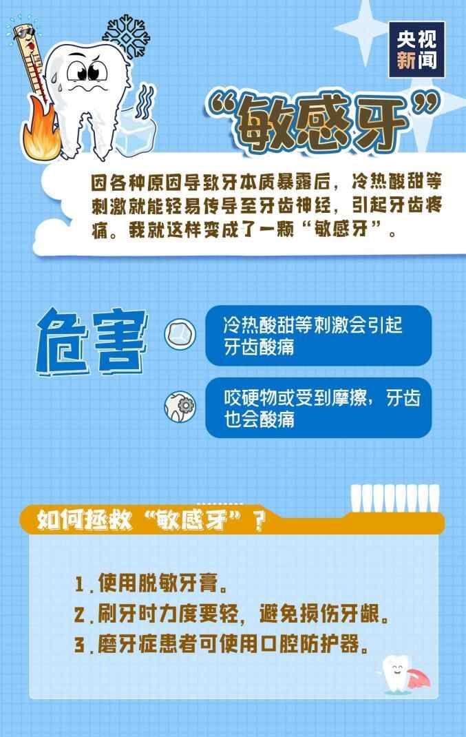专家表示,如果牙齿出现敏感、冷热刺激疼,刷牙出血等情况,说明牙齿出问题了,应及时就诊。