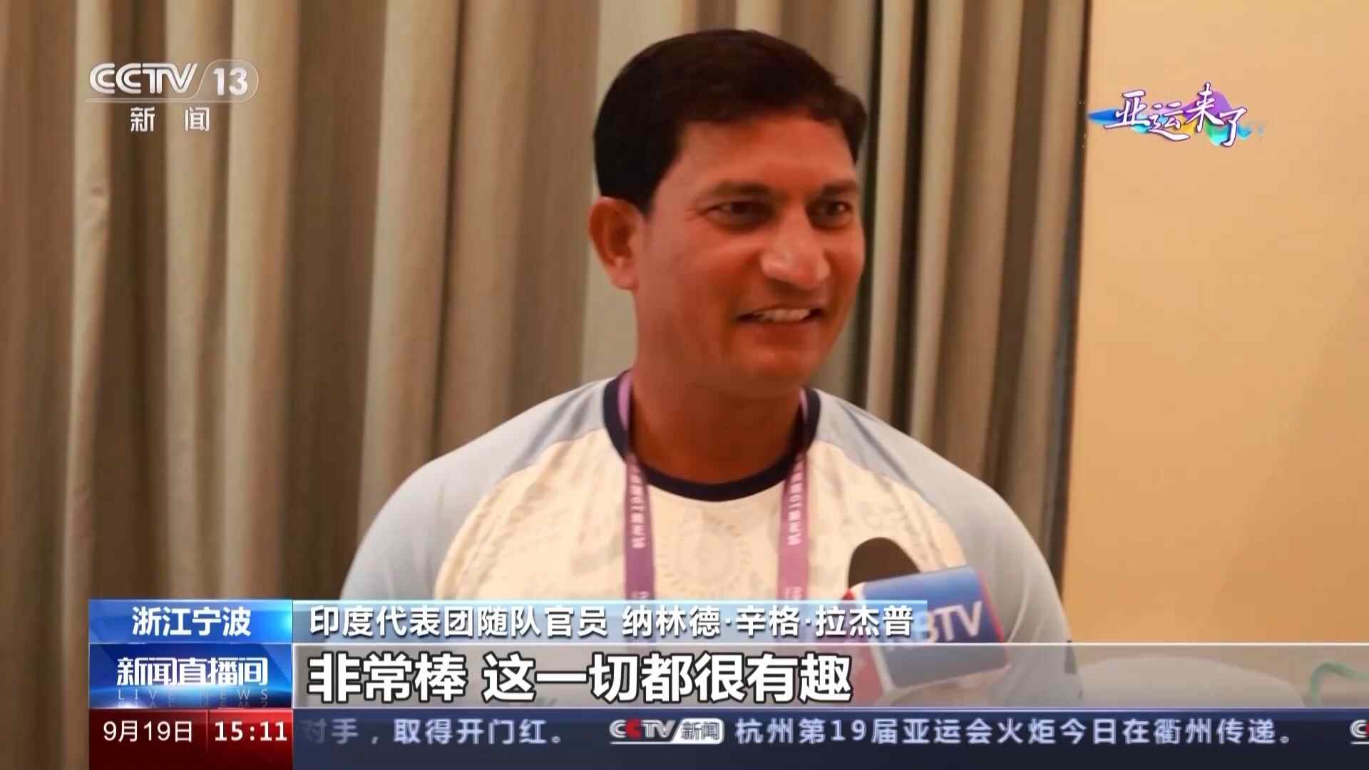 印度代表团随队官员 纳林德·辛格·拉杰普:非常棒,这一切都很有趣,我们在这也不会感到无聊,因为这里有非常多的活动。