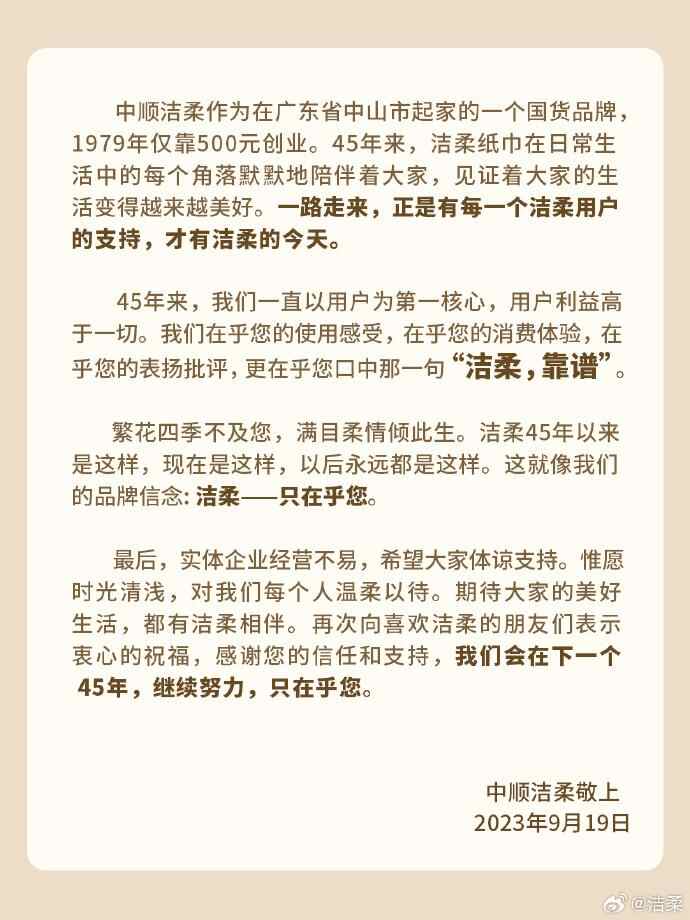 9月19日,洁柔发布声明称,由于失误,导致产品订单价远低于成本价,造成公司损失预计达千万元。但公司承诺所有订单会正常发货。