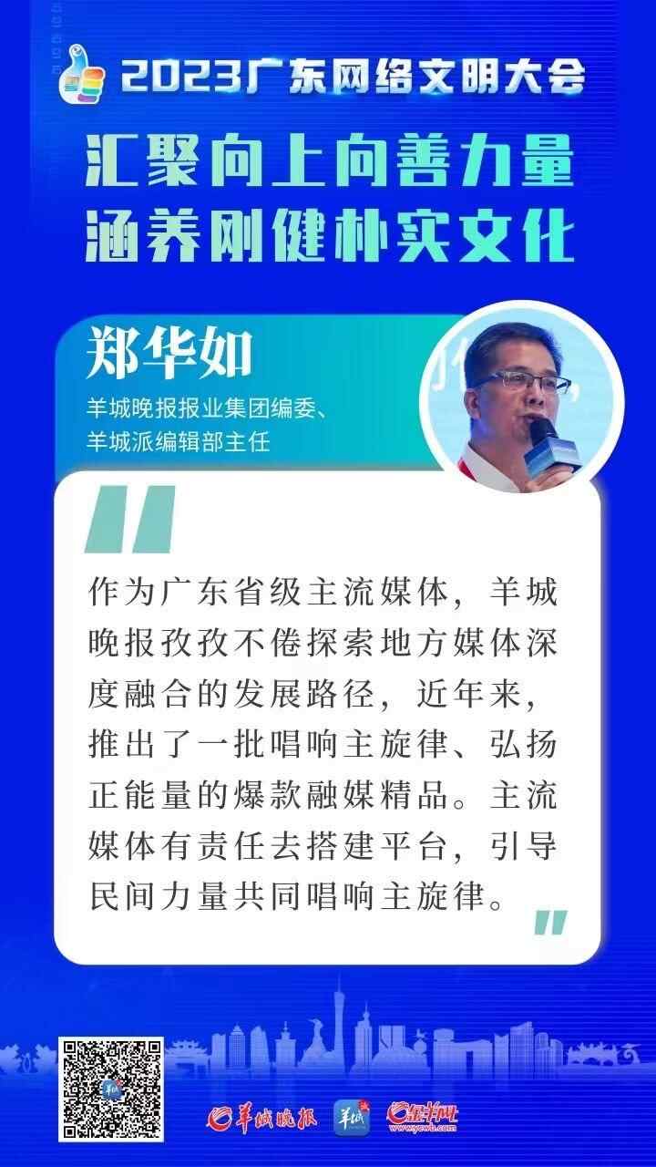 9月21日,以“汇聚向上向善力量 涵养刚健朴实文化”为主题的2023广东网络文明大会在广州拉开帷幕。在网络内容建设论坛上,羊城晚报报业集团编委、羊城派编辑部主任郑华如,以《加强传播渠道体系建设 打造全新融媒产品生态》为题,发表演讲。