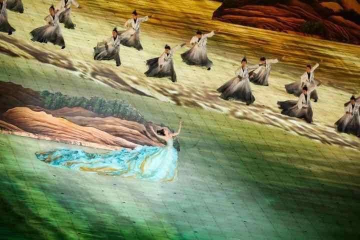 这次开幕式,现场将通过地屏、立体透视网幕的配合,通过裸眼3D的视效与虚拟影像的设计,直接把钱塘江、把青山绿水都搬到舞台之上。陆川导演透露,这个网幕是地球上最大的银幕,有9个IMAX那么大。
