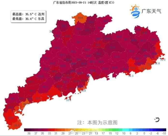 热热热,不只是广州,整个广东都还是高温依旧。9月21日14时,全省气温已全部30℃+,最高气温的连州已达到35.5℃。
