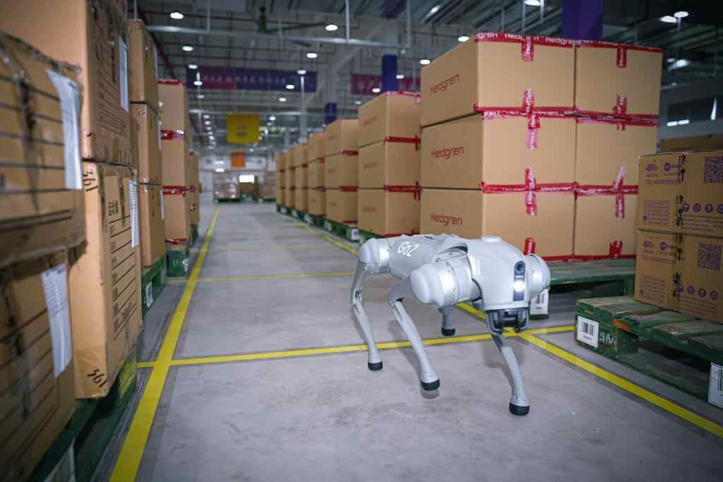 9月13日,机器狗在杭州亚运会物流中心内执行巡检工作。新华社记者 江汉 摄