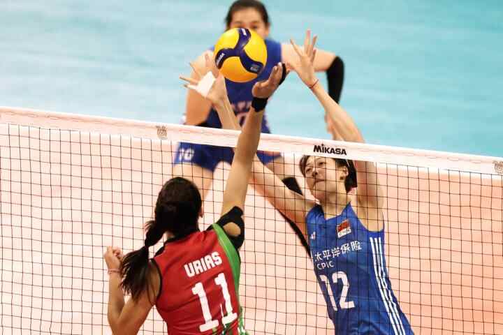 2023年9月17日,在浙江省宁波市举行的巴黎奥运会女排资格赛A组比赛中,中国队以3比0战胜墨西哥队。新华社记者 陈斌 摄