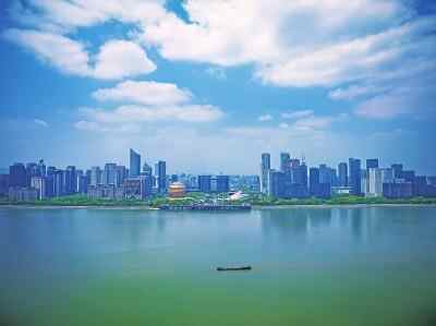 杭州钱江新城与钱塘江景色。新华社记者江汉摄