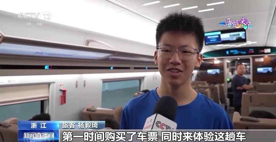 据了解,目前车厢已实现5G+Wi-Fi网络全覆盖,部分车厢座椅还基于人体工程学进行了优化调整,舒适智能的亚运列车吸引了许多市民游客前来乘坐体验。