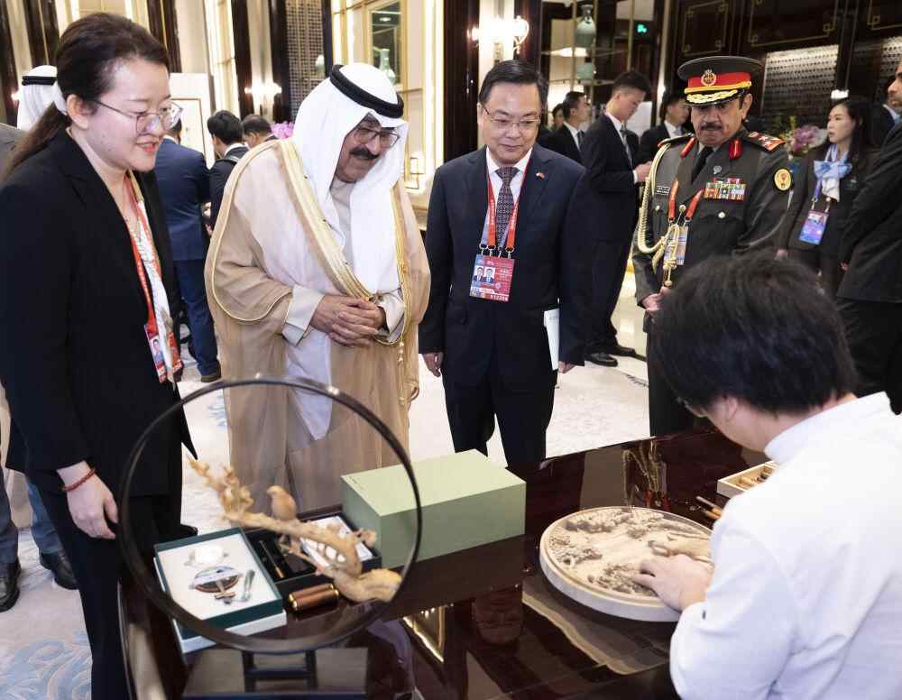 9月23日中午,国家主席习近平和夫人彭丽媛在浙江省杭州市西子宾馆举行宴会,欢迎来华出席杭州第19届亚洲运动会开幕式的国际贵宾。欢迎宴会开始前,贵宾们欣赏了浙江非物质文化遗产展示。